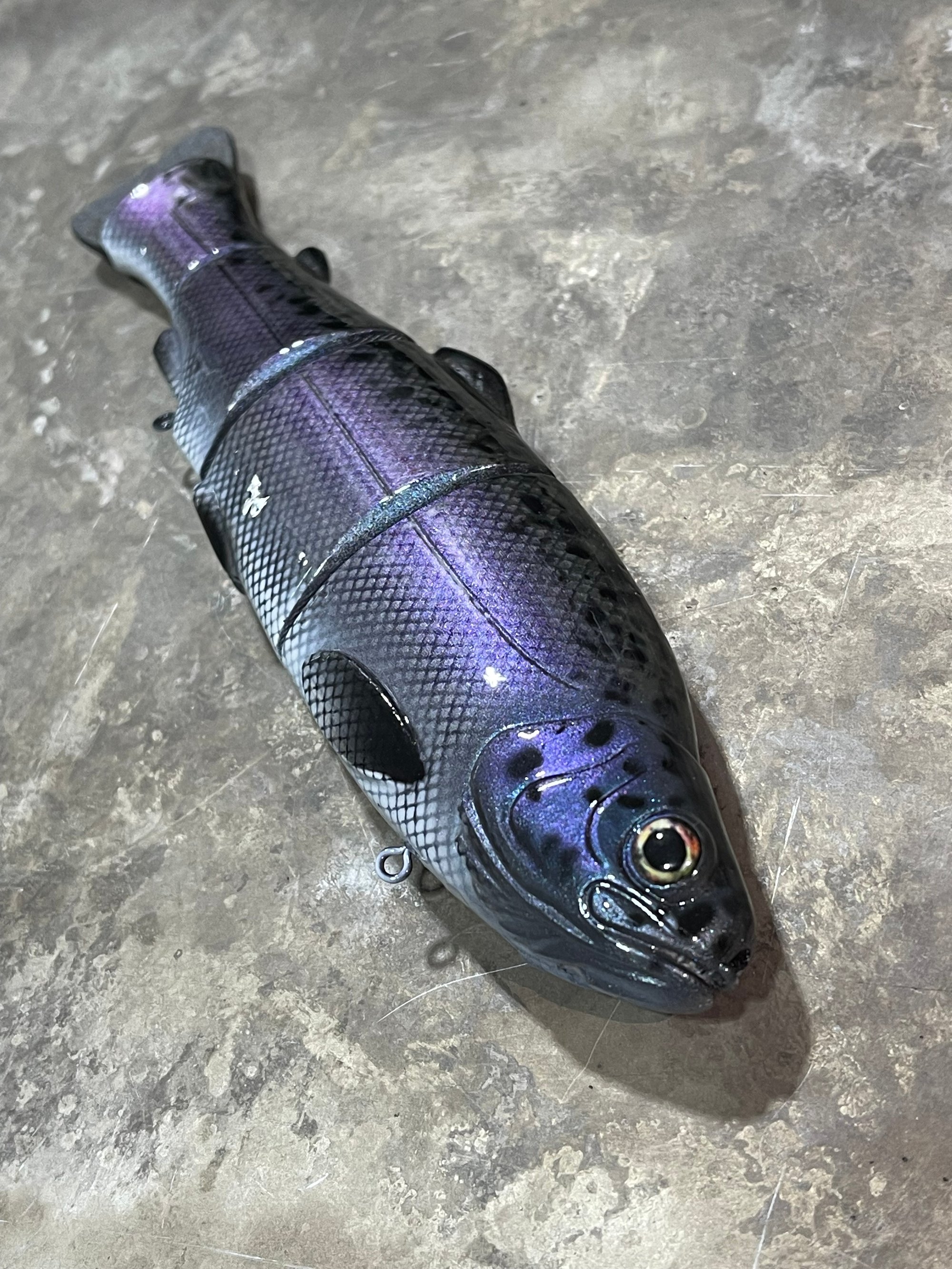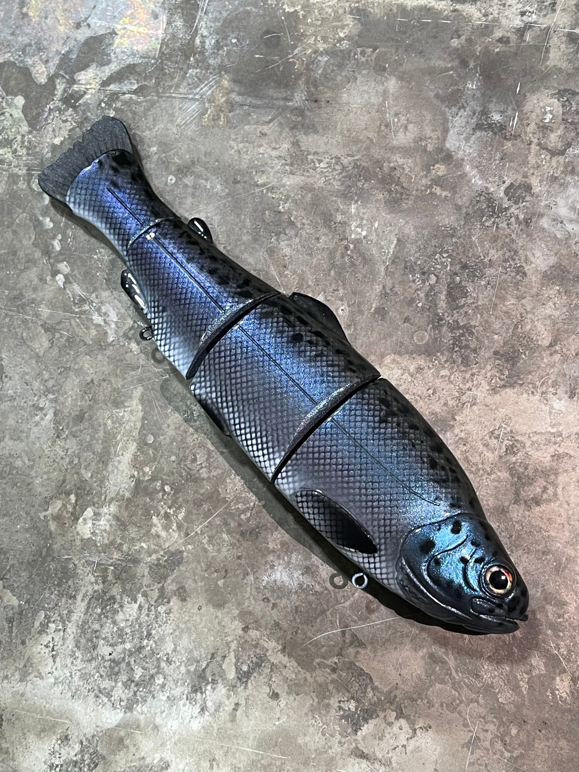 Includes Gamakatsu size 4 round bend trebles, owner hyperwire split rings, swiveling hook hangers, premium 3D eyes & a premium hand poured rubber tail.
